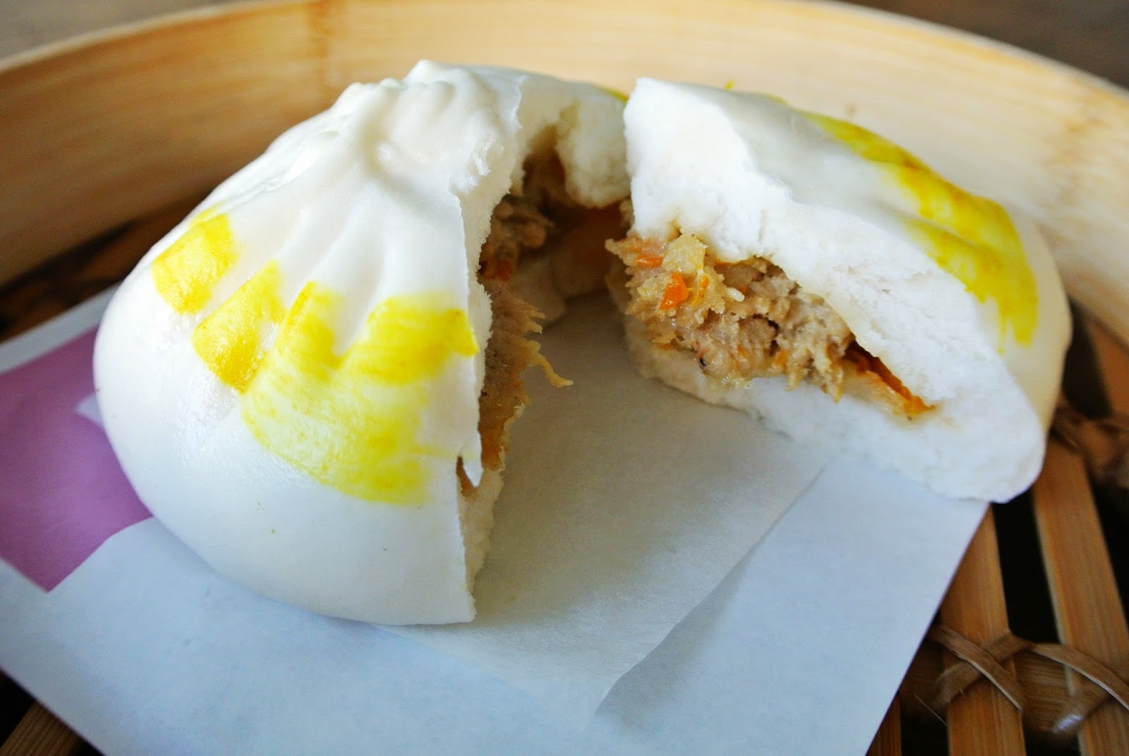 在菜單上更不用說,以「蔥肉包」(45元)為招牌,更有「南瓜櫻花蝦」(45元)、「芝麻松子包」(45元)等創意搭配,顛覆大家對包子的想像。包子均現點現蒸,因此需要一些時間等待,內用的包子們裝盛在傳統蒸籠裡送到顧客面前,十分俱有傳統風情。