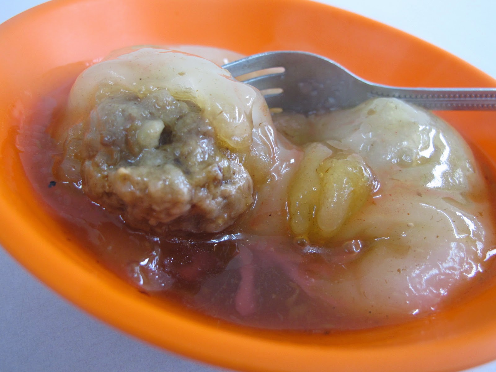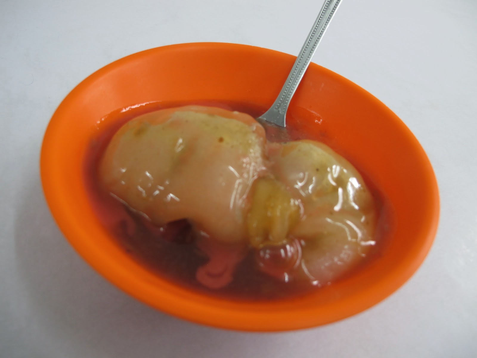 肉圓的肉有事先醃過,吃起來全是赤肉,外皮雖軟Q,但不致於要咬很久,