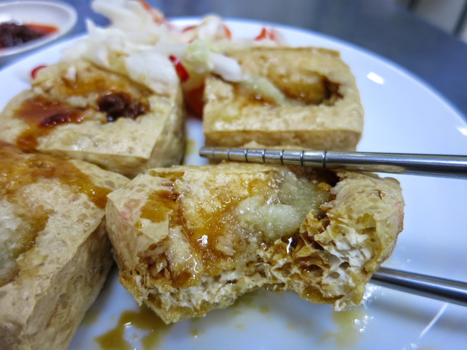 吃臭豆腐不是在吃它的臭(本來就不是啊!),一個好臭豆腐的秘訣是要炸到酥而不老,